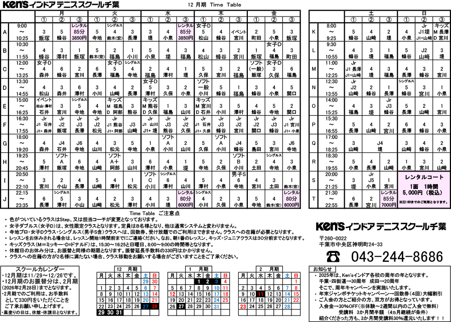 レッスンスケジュール —Ken’sインドアテニススクール千葉