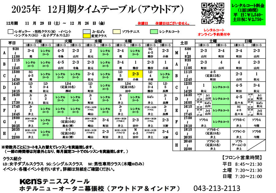2025年12月期(11月29日〜12月26日)タイムテーブル