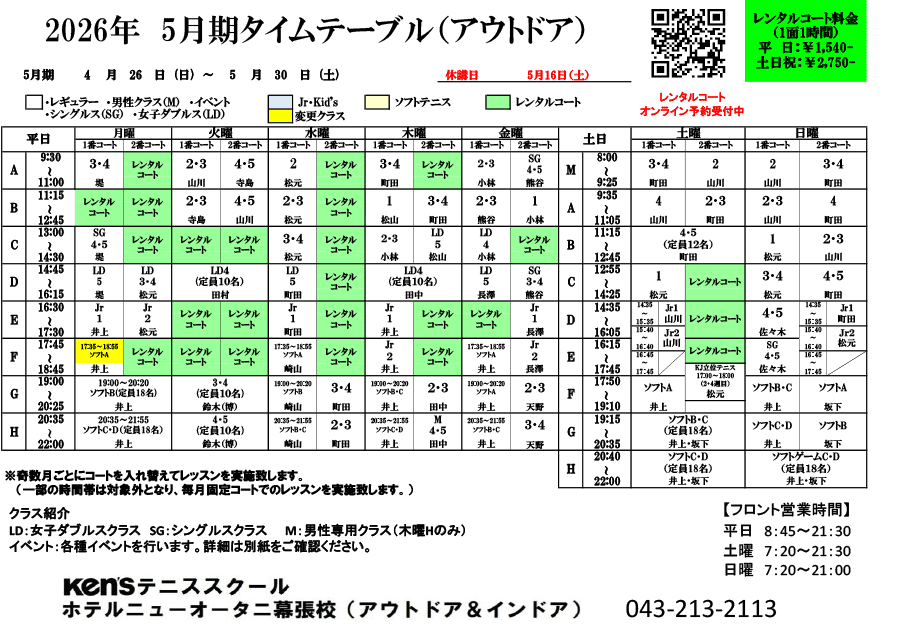 2026年5月期(4月26日〜5月30日)タイムテーブル