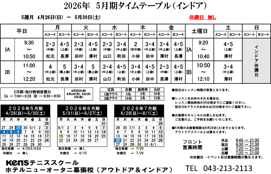 2026年5月期(4月26日〜5月30日)タイムテーブル