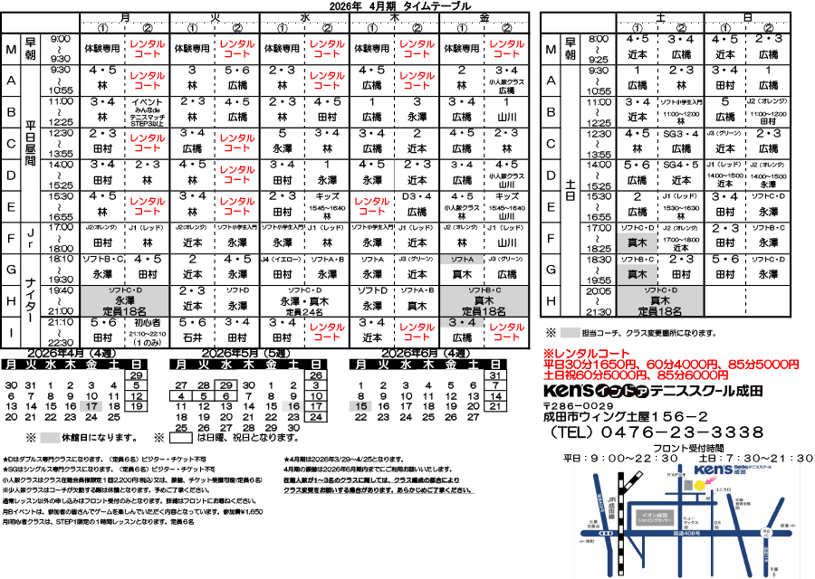 レッスンスケジュール —Ken’sインドアテニススクール成田