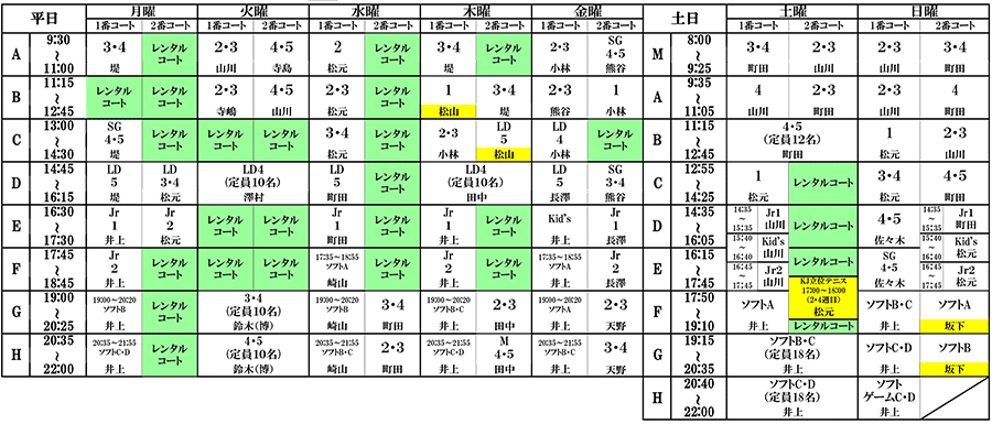 | レンタル | ラケット、シューズ、ボールのレンタルあり(各300円 ※スクール生無料) |